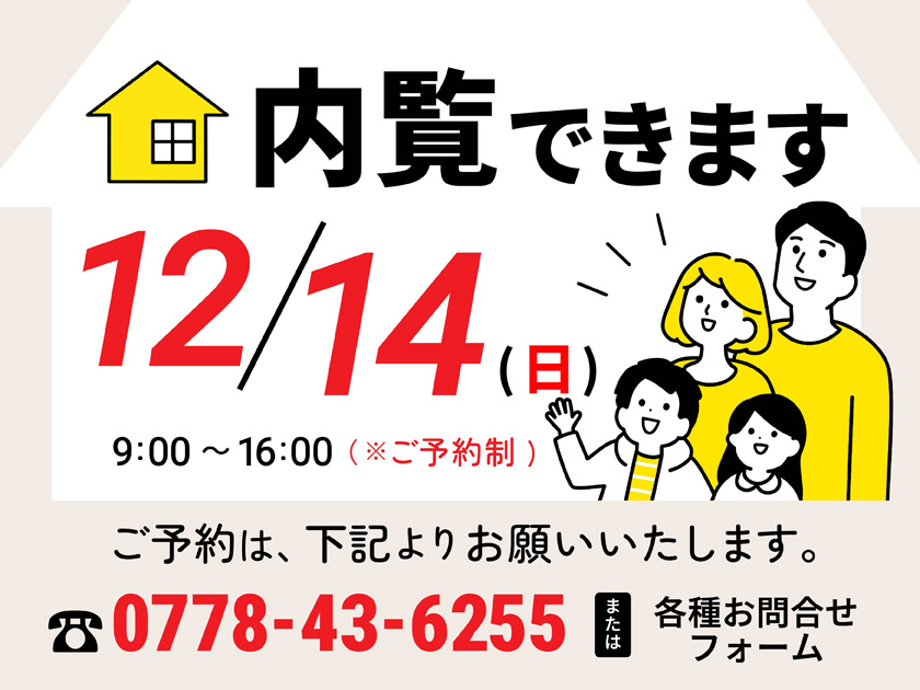 【アーネスト内覧日案内バナー】 Published 2025年12月8日 at 840 × 630 in 鯖江市神中町第1【土地付き新築戸建て】2号棟 ※「アルプラザ鯖江」徒歩9分♪ ← Previous